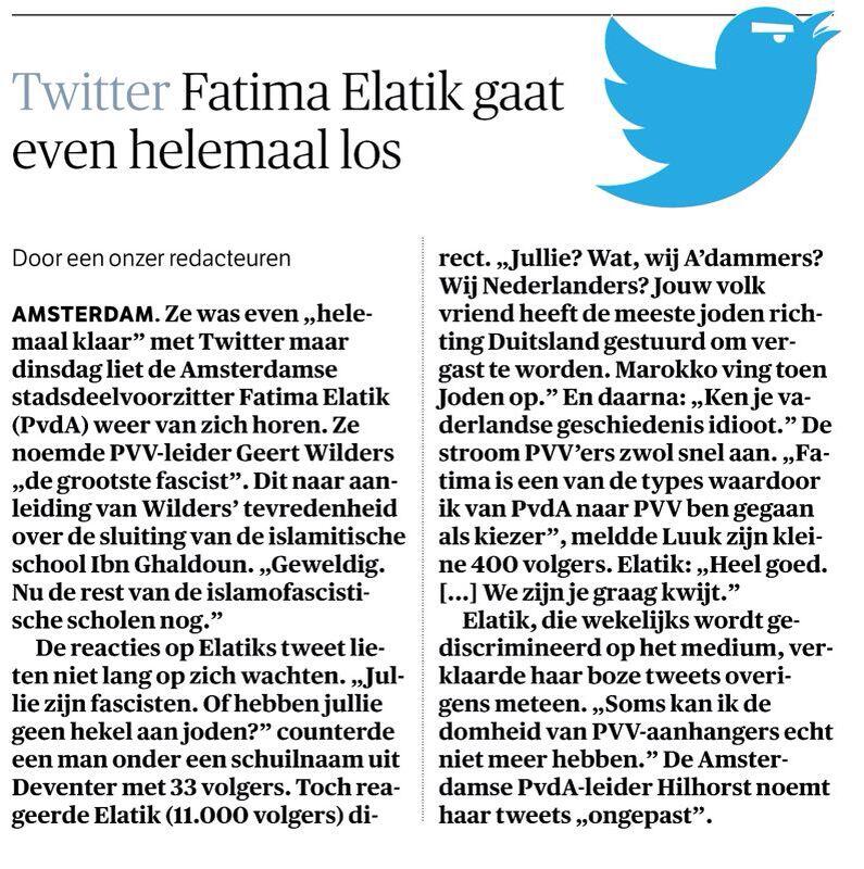 Je maag keert ervan om. Tenminste, míjn maag. Yoeri Albrecht lijkt het normaal te vinden, want die zegt pas wat als Afshin Ellian wordt ‘bedreigd’ (excuses, ‘bedreigt’). Iedereen wordt pas wakker als een moslim een islamcriticus een grote bek geeft. Niemand is geïnteresseerd als Hassnae wordt bedreigd, of Stienen, of ik, of Elatik. Pas als Elatik iets terugzegt, dan spreekt iedereen er schande van. Dan stoot ook Pieter Hilhorst nog even een dolk in haar rug.