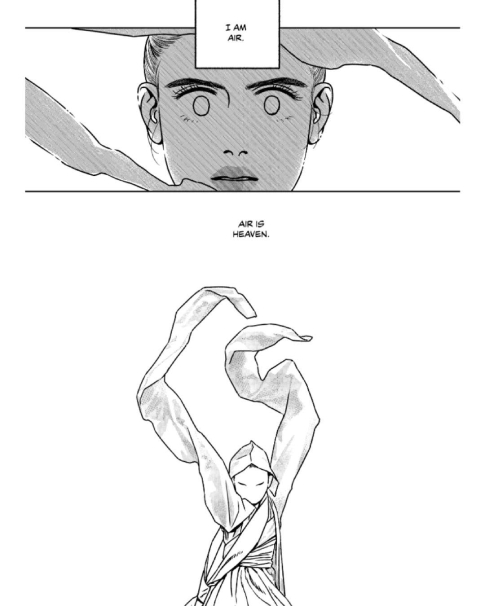 Minstens zo belangrijk als het verhaal in Raging Clouds zijn de beelden. Prachtig getekend en gemonteerd, waarbij Yudori alle mogelijkheden van het beeldverhaal gebruikt. Zwier, ritme, verspringende beelden, inzoomen op details, dan weer totaalbeelden, wat kan deze vrouw dat toch goed. En wat kan ze goed lichamen tekenen, vlees, huid, de zachtheid van borsten. Zinnelijkheid, emotie, waarbij een gezicht verspringt van hyperrealistisch naar minimalistisch karikaturaal. Yudori beheerst het hele palet.